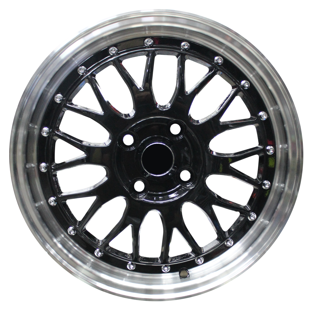 115 Inch - LM iLLUSION - 4x100 - Gloss Black + Silver Machined Lip + Silver Rivets